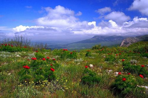 Впрочем, самые пики Крымских гор принято называть яйла. Яйла — это цепь своеобразных столообразных плоских вершин, соединенных глубокими перевалами. Когда-то здесь были прекрасные пастбища с сочной травой и луговыми растениями. Большая часть эндемиков Крыма растет именно на яйлах.